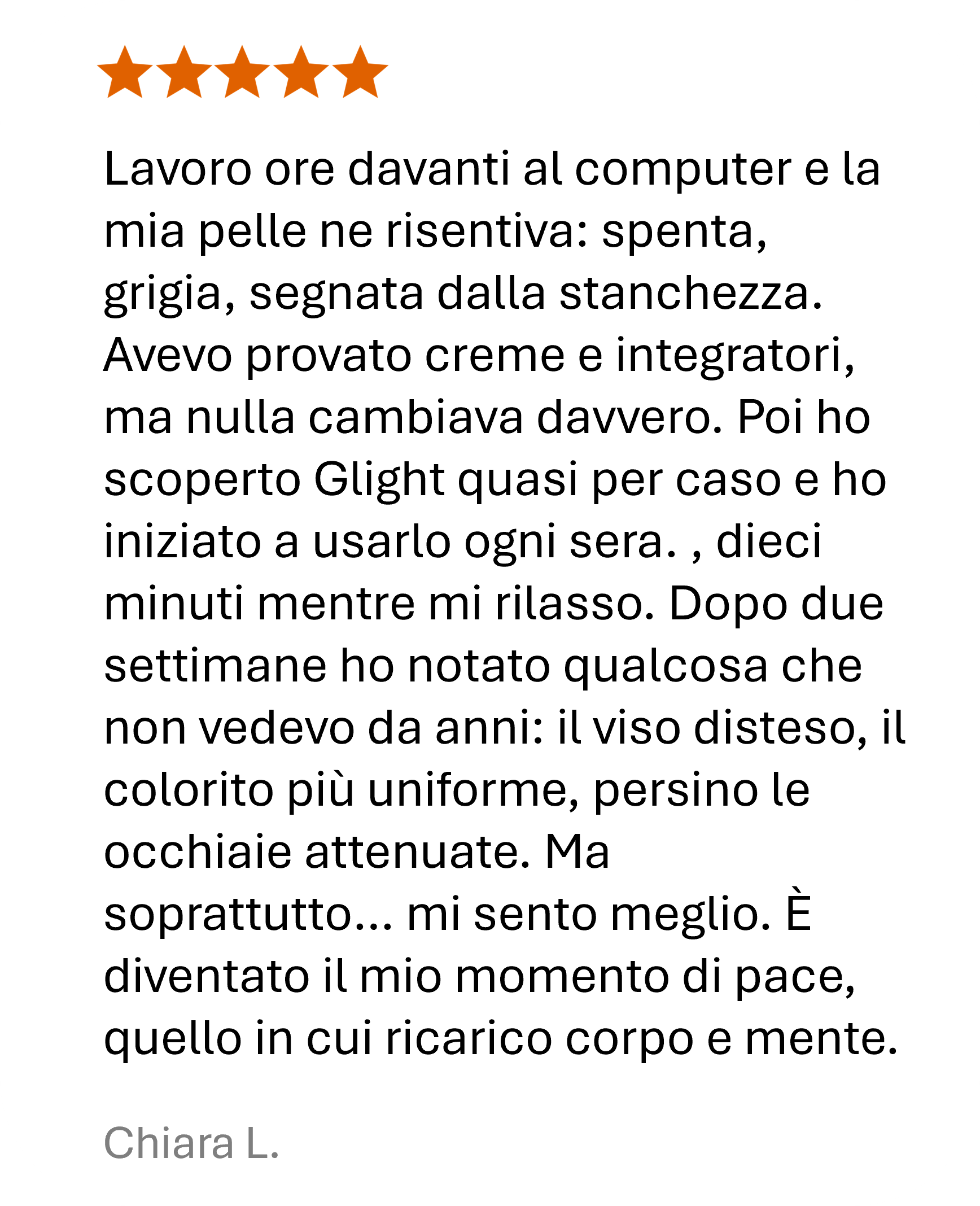 Per ricevere il documento “La Scienza dietro Glight”, scrivici: contact@glightbeauty.com
